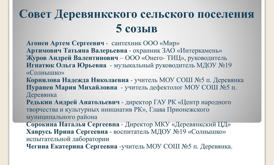 Администрация Деревянкского сельского поселения